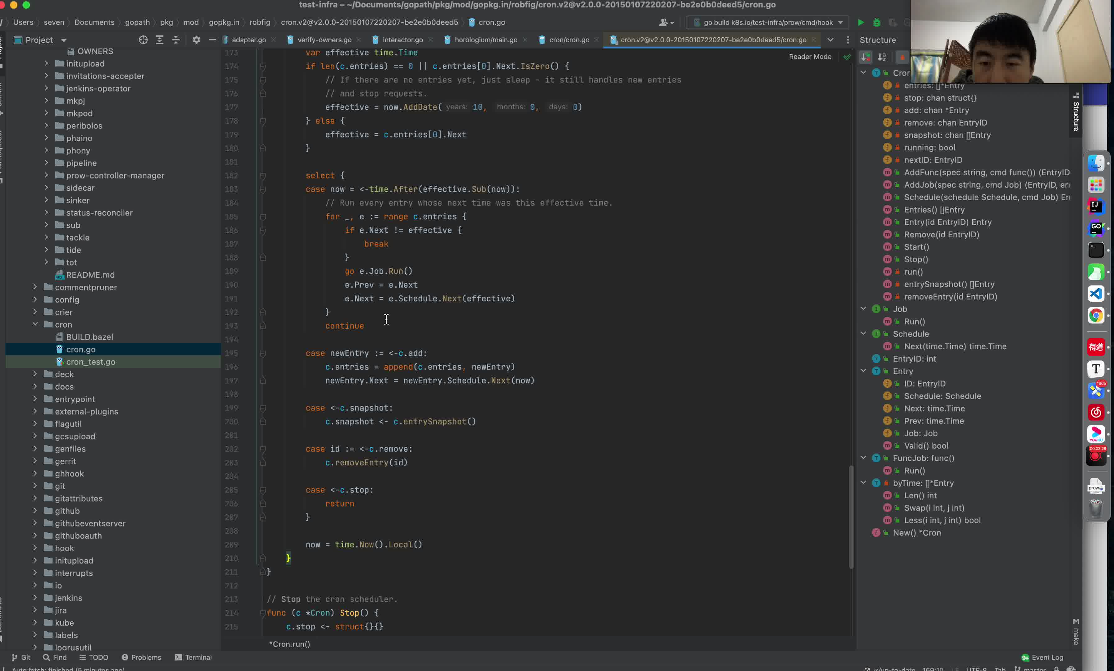 [视频] k8s test infra prow horologium周期性任务创建源码解读 horologium模块负责创建周期性任务,代码量较少,未作预习现场展示阅读代码的方法