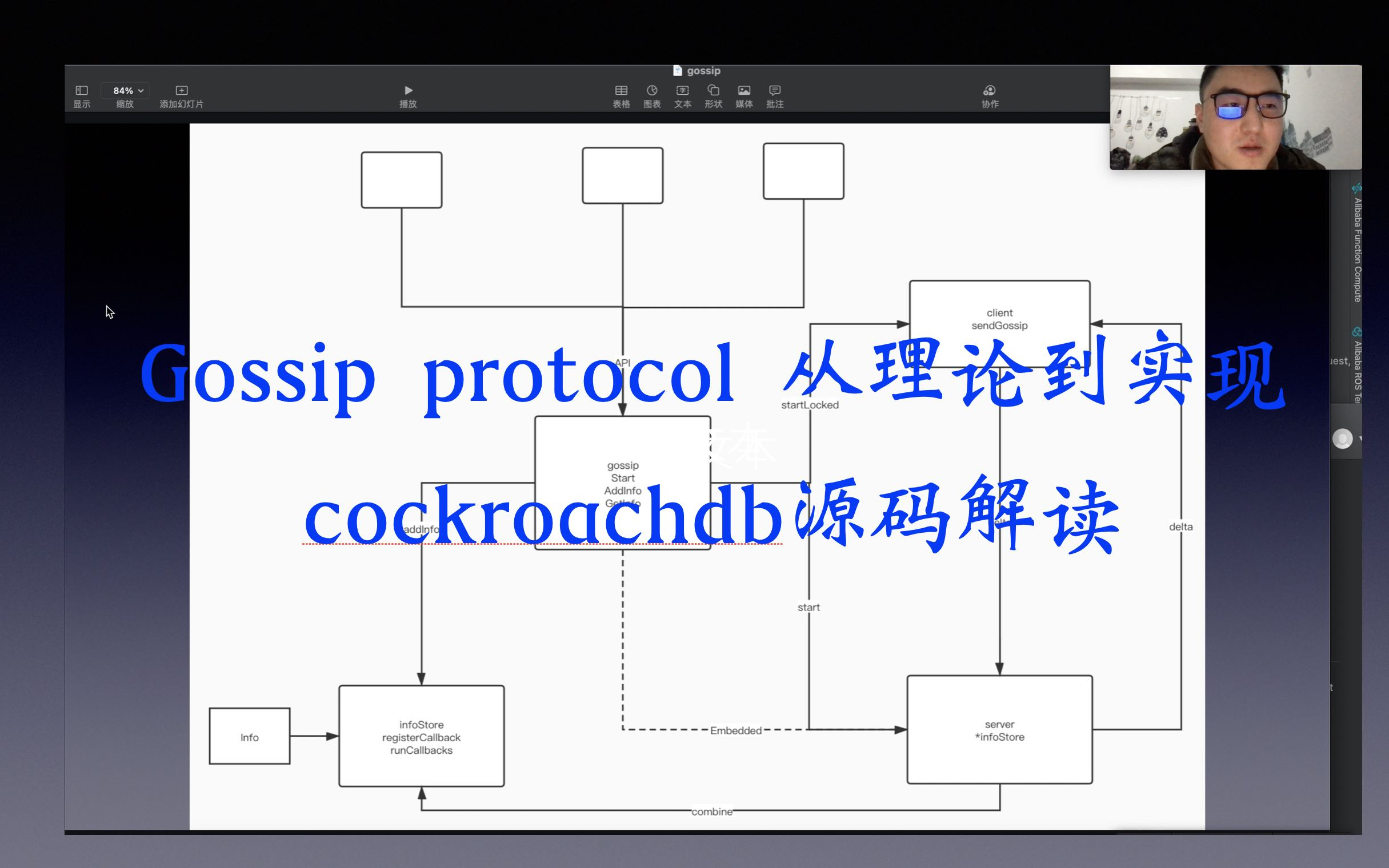 [视频] gossip protocol从理论到实现 cockroachdb源码解读 gossip是在分布式系统中广泛应用的一项技术,本系列分享让你在懂得gossip理论后,能够自己模仿应用到自己的项目中,视频中提到了常见的设计模式,阅读代码的方式方法,cockroachdb 中gossip的设计细节,#硬核系列#