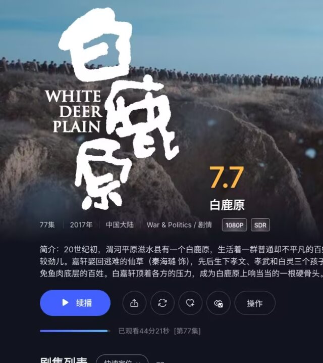 《白鹿原》多年前读过小说本都忘了,电视剧断断续续3~4个月终于一口气看完了;comment:故事是个好故事但是没拍好,多条故事线就像按了快进键刻画的不够深刻;但是对于新时代的人了解宗族社会封建压迫是挺好的素材;以前的宗族社会是建立在农耕文明土地是最核心的生产材料,生产关系决定了社会结构;反观现代文明最核心的生产要素是什么呢?maybe 知识+数据?;所以奶头乐这种东西可能也为了知识资源的垄断;甚至将有害的知识广泛传播也是为了知识垄断;maybe but who care?收起