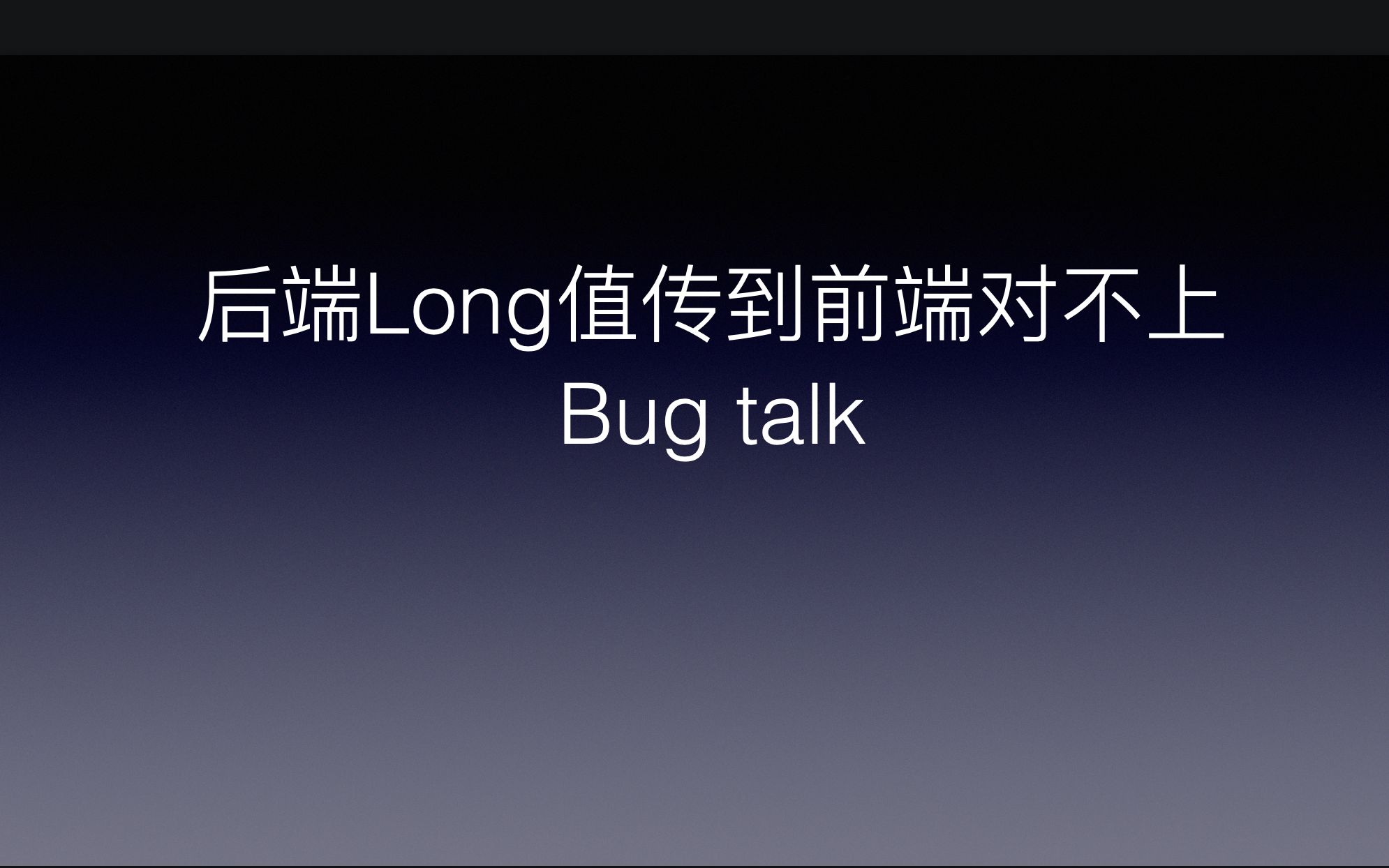 [视频] 聊聊BUG.10-long类型后端传到前端数值对不上的原因 经典问题:long类型后端传递给前端数值对不上的问题,最近开发又遇到了分享给大家,希望对你有帮助。