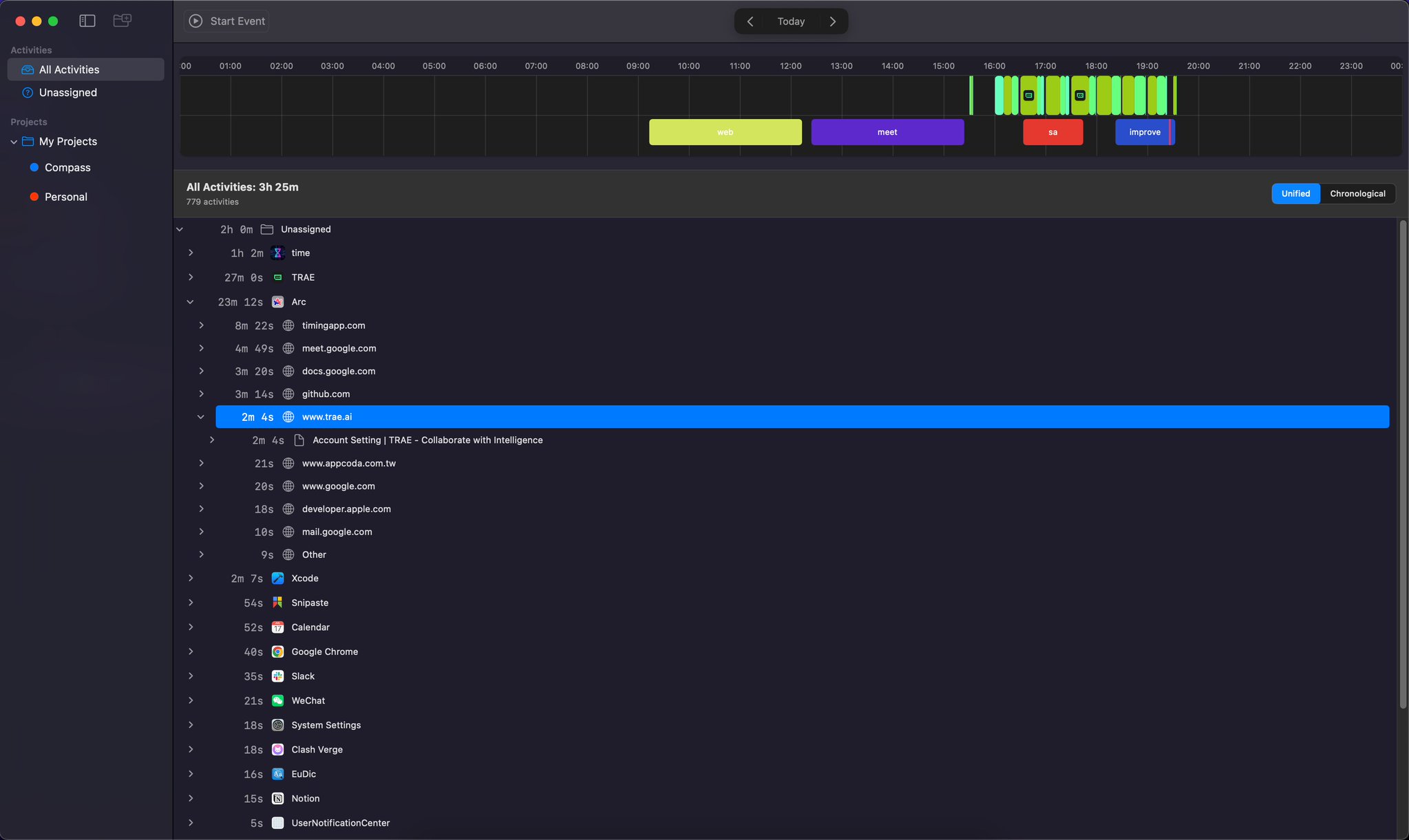 现在AI模型确实强了,之前一直没做出来app现在用Gemini3pro做出来了,和AI沟通越来越简单了 欢迎使用这个复刻的timingapp;原app订阅10欧每个月,之后再也不用订阅了 https:// github.com/0xkamalei/mac- time-trace/releases/tag/0.0.2 …